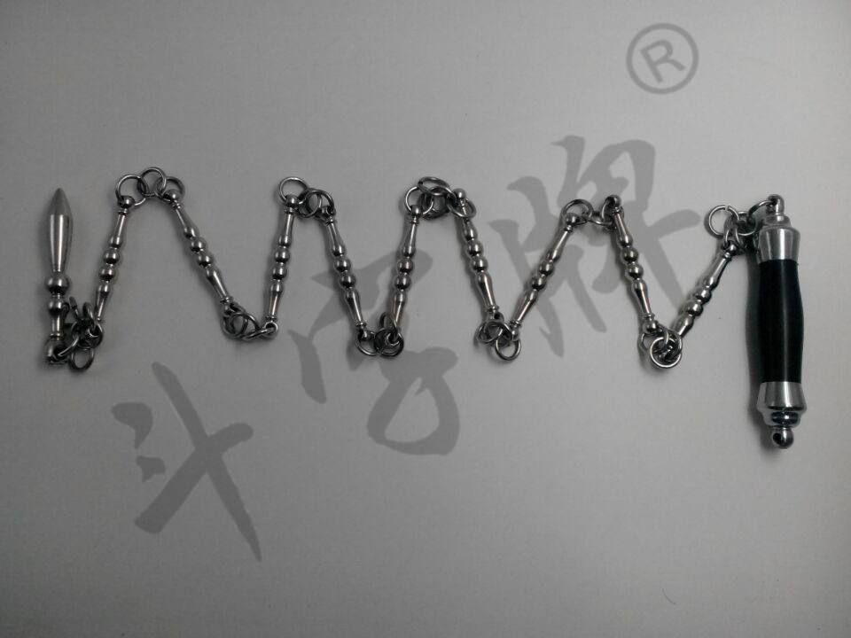 九节鞭由鞭把、鞭头和中间8个钢节组成,每节用3个圆环连接起来,故称:“九节鞭”。鞭的长度一般以直立,“把”顶触下颏,“镖头”触地为宜。
